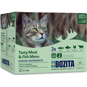 Bozita Cibo Umido per Gatti Carne & Pesce in Gelatina Multipack 12 x 85 g - 100% Ingredienti Svedesi, Senza Cereali, con Prebiotici
