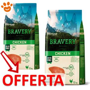 Bravery Crocchette per Cani Adulto Medium/Large al Pollo 12kg - Grain Free, Monoproteico e Ipoallergenico