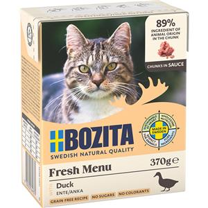 Bozita Tetra Bocconcini in Salsa per Gatti - Anatra, 6 x 370 g, Senza Cereali e Zucchero, 7,5% Proteine, 5% Grassi