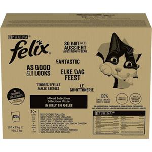 Felix Le Ghiottonerie - Cibo umido per gatti, Selezione mista (Manzo, Pollo, Merluzzo, Tonno) - 120 x 85 g