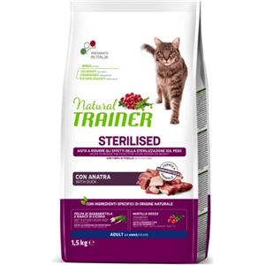 Trainer Cibo Secco per Gatti Adulto Sterilizzato con Anatra - 1,5 kg - Monoproteico e Ricco di Fibre