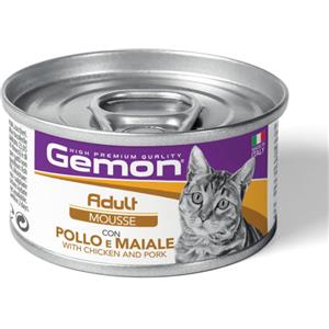 Gemon Adult Mousse con Pollo e Maiale - Alimento Completo per Gatti Adulti - 85g