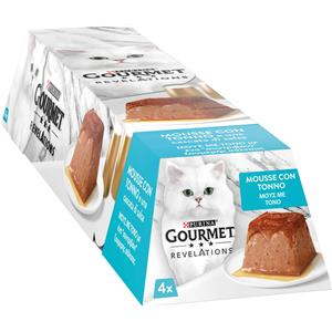 Gourmet Revelations Mousse Tonno - Alimento umido per gatti, 4 x 57 g, porzioni complete e raffinate