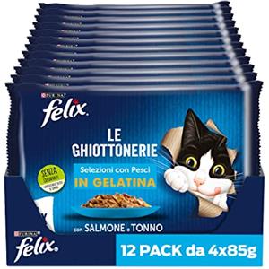 FELIX Le Ghiottonerie - Cibo Umido Gatto Adulto, Bocconcini in Gelatina con Salmone e Tonno. 48 Buste da 85 g