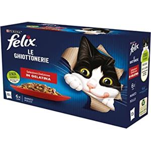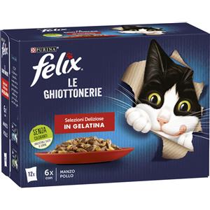 Purina Felix le Ghiottonerie Selezioni Deliziose in Gelatina Multipack 12x85 gr 12 Bustine 6 x Manzo 6 x Pollo - 1° ORDINE? fino al 20% di sconto