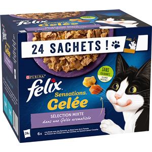 Felix Sensations - Alimento umido per gatti adulti in gelatina, varietà mista (Manzo, Tacchino, Pesce, Salmone) - Confezione da 24 x 85 g
