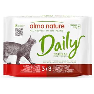 Almo Nature Daily - Alimento Umido Completo per Gatti Adulti con Tonno e Salmone e Merluzzo e Gamberetti - 6 Bustine da 70 g