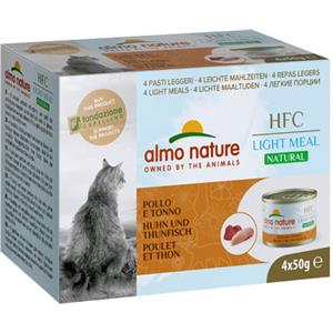 Almo Nature HFC Natural Light Meal Pollo e Tonno - Alimento Umido per Gatti Adulti, 4 x 50 g, Controllo del Peso