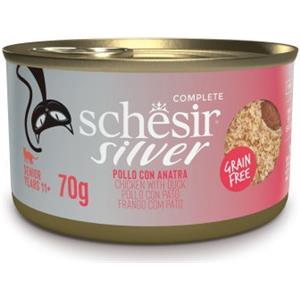 Schesir Silver Senior Cat - Filetti di Pollo e Anatra in Mousse e Filetti - Lattina da 70 g