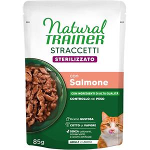 Trainer Natural Straccetti con Salmone per Gatti Adulti Sterilizzati - Cibo Umido Completo 85g