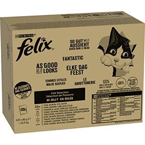 Felix Cibo Umido per Gatti - Mix di Pesce in Gelatina, 120 Buste da 85 g