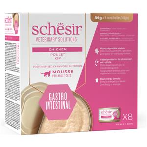 Schesir Veterinary Solutions Mousse Gastro Intestinal al Pollo - 8 Lattine da 80gr per Gatti con Disturbi Digestivi