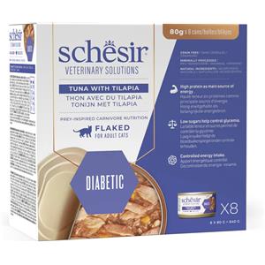 Schesir Veterinary Solutions Diabetic - Alimento Umido per Gatti con Pesce, 8 Lattine da 80g, Dietetico per Diabete Mellito