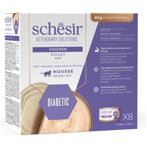 Schesir Veterinary Solutions Diabetic Mousse per Gatti - Pollo, 8 Lattine da 80gr, Dietetico per Diabete Mellito