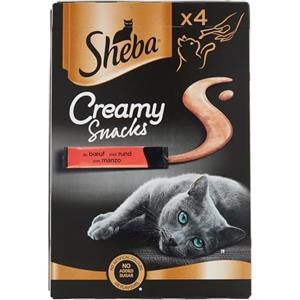 Sheba Creamy Snack Manzo - Alimento Complementare per Gatti, 4 Bustine da 12g, Consistenza Cremosa
