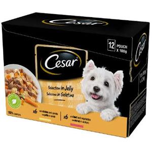 Cesar Cibo Umido per Cani - Selezione in Gelatina 12x100g con Manzo, Pollo e Verdure