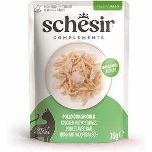 Schesir Complements Filetto in Gelatina - Alimento Umido per Gatti con Pollo e Branzino, 6 x 70 g