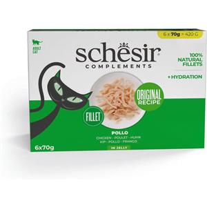 Schesir Complements Alimento Umido per Gatti - Filetto di Pollo in Gelatina, Multipack 6x70g