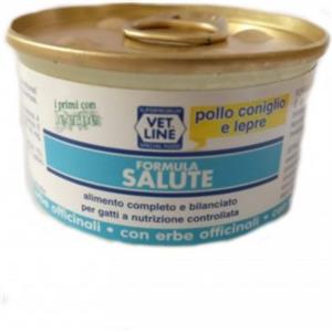 Vet Line Cibo Umido Salute Coniglio e Lepre 85g - Alimento Completo per Gatti Anziani e in Sovrappeso