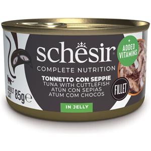Schesir Tonnetto con Seppie in Gelatina - Alimento Umido Completo per Gatti, 6 x 85 g, 100% Naturale con Vitamine