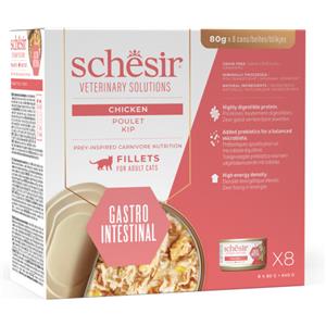 Schesir Veterinary Solution Gastro Intestinal - Alimento Umido Dietetico per Gatti Adulti con Filetti di Pollo - 8 Lattine da 80 gr