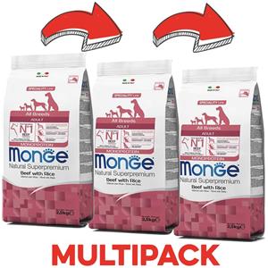 Monge KIT 3x Monge Adult Monoprotein Manzo con Riso per Cani - 12 Kg, 3 pezzi - PREZZO A CONFEZIONE