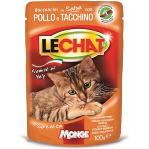 Monge LeChat Cibo Umido per Gatti Adulti Pollo e Tacchino 100 grammi - Bocconcini Morbidi e Gustosi