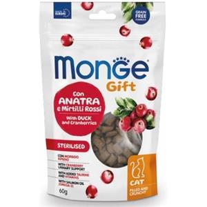 Monge Snack per Gatti Adulto Sterilizzati con Anatra e Mirtilli Rossi - 60 g, Alimento Complementare con Esterno Croccante e Ripieno Morbido
