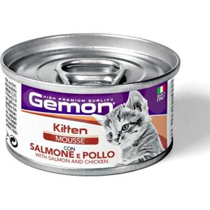 Gemon Kitten Mousse Salmone e Pollo 85g - Alimento Completo per Gattini in Crescita