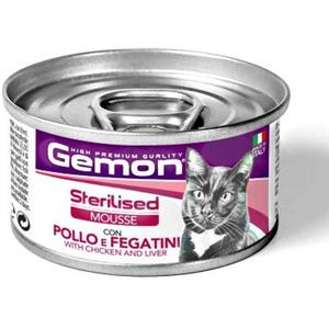 Gemon Mousse Sterilised con Pollo e Fegatini - Alimento Completo per Gatti Adulti Sterilizzati, 85 gr