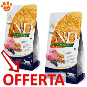Farmina Cat N&D Ancestral Grain Adult Agnello e Mirtillo - Offerta [PREZZO A CONFEZIONE] Quantità Minima 2, Sacco Da 5 Kg