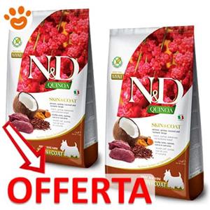 Farmina N&D Quinoa Skin & Coat Crocchette per Cani Adulto Mini - Cervo, Cocco e Curcuma 7 Kg