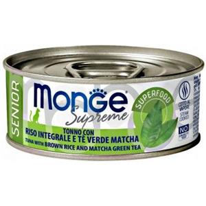Monge Supreme Senior - Cibo Umido per Gatti Anziani al Tonno con Riso Integrale e Tè Verde Matcha - 80 gr