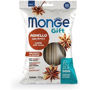 Monge Snack Gift Puppy & Junior Mini Stick Dental Agnello con Anice - Alimento Complementare per Cani Cuccioli di Taglia Mini - 120 g