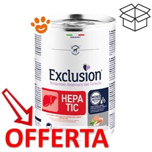 Exclusion Dog Diet Hepatic Maiale, Riso e Piselli - Lattina Da 200 Gr - CONFEZIONE RISPARMIO