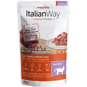 Italian Way Cibo Umido per Gatti Sterilizzati - Sfilaccetti in Salsa Maiale e Mirtilli - 85 gr
