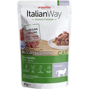 Italian Way Sfilaccetti in Salsa per Gatti Adulti - Gusto Agnello, 85 gr, Delicate Digestion, Grain Free