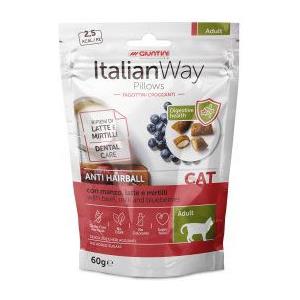 Italian Way Cat Pillows Anti Hairball con Manzo, Latte e Mirtilli - Snack Grain Free per Gatti da 60 gr