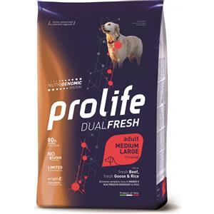 PROLIFE DOG DUAL FRESH ADULT BEEF/GOOSE&RICE MEDIUM/LARGE 12 KG*Acquisto minimo 2 SACCHI*