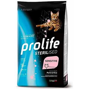 Prolife 7 kg Prolife Sterilised Sensitive Alimento Cibo Secco Crocchette Croccantini per Gatti Adulti Sensibili e Sterilizzati con Maiale e Riso No Gluten