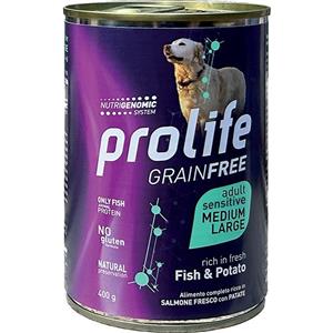 Prolife Cibo Umido Grain Free per Cani Adulti Medium/Large - Pesce e Patate, 6 Lattine da 400gr
