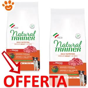 Natural Trainer Dog Adult Medium Manzo - Offerta [PREZZO A CONFEZIONE] Quantità Minima 2, Sacco Da 12 Kg