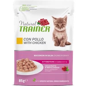 Natural Trainer Cat Kitten e Young con Pollo Bocconcini in Salsa Busta 85 g