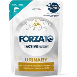 Forza10 Urinary Active al Pesce - Alimento Umido Dietetico Completo per Gatti Adulti, Bustina da 80 g