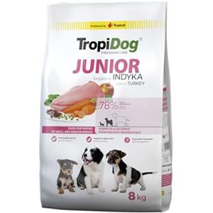 Tropidog Premium Junior Small/Medium - Crocchette per Cani con Tacchino e Riso, 8 kg