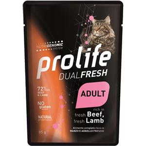 Prolife Dual Fresh Cibo Umido per Gatti Adulti Manzo e Agnello 85g - Alimento Completo e Nutriente