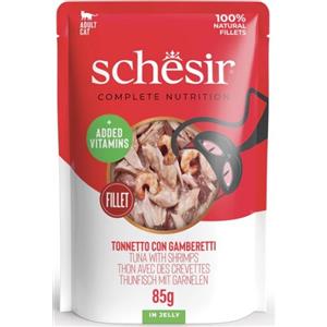 Schesir Cibo Umido per Gatti Adulto al Gusto Tonnetto con Gamberetti in Gelatina - 85 gr