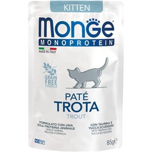 Monge Natural Superpremium Monoprotein Kitten Patè Trota 85g - Alimento Completo per Gattini con Omega-3