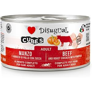 Disugual Cibo Umido per Cani Adulti - Cubetti di Manzo, Arrosto di Pollo e Zucca - Lattina da 150 gr