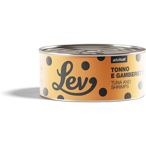 Lev Cat Adult Cibo Umido per Gatti - Tonno e Gamberetti - Lattina da 140 Gr